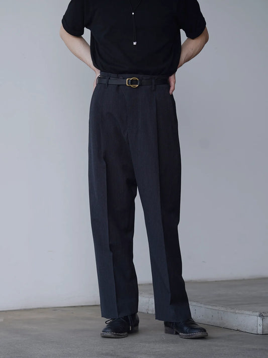 山内 | ウール× 和紙・サイドシームレスワンタックパンツ charcoal black