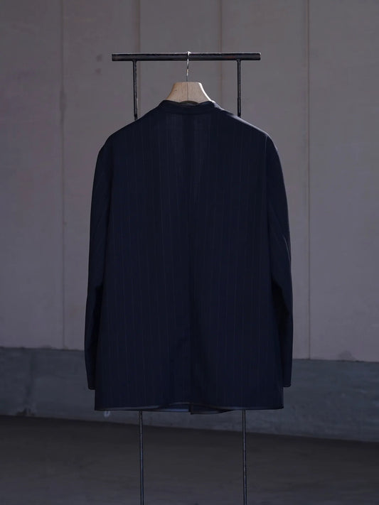 SARTO | [HIGH TWIST WOOL] NO-COLLAR JACKET NAVY STRIPE
