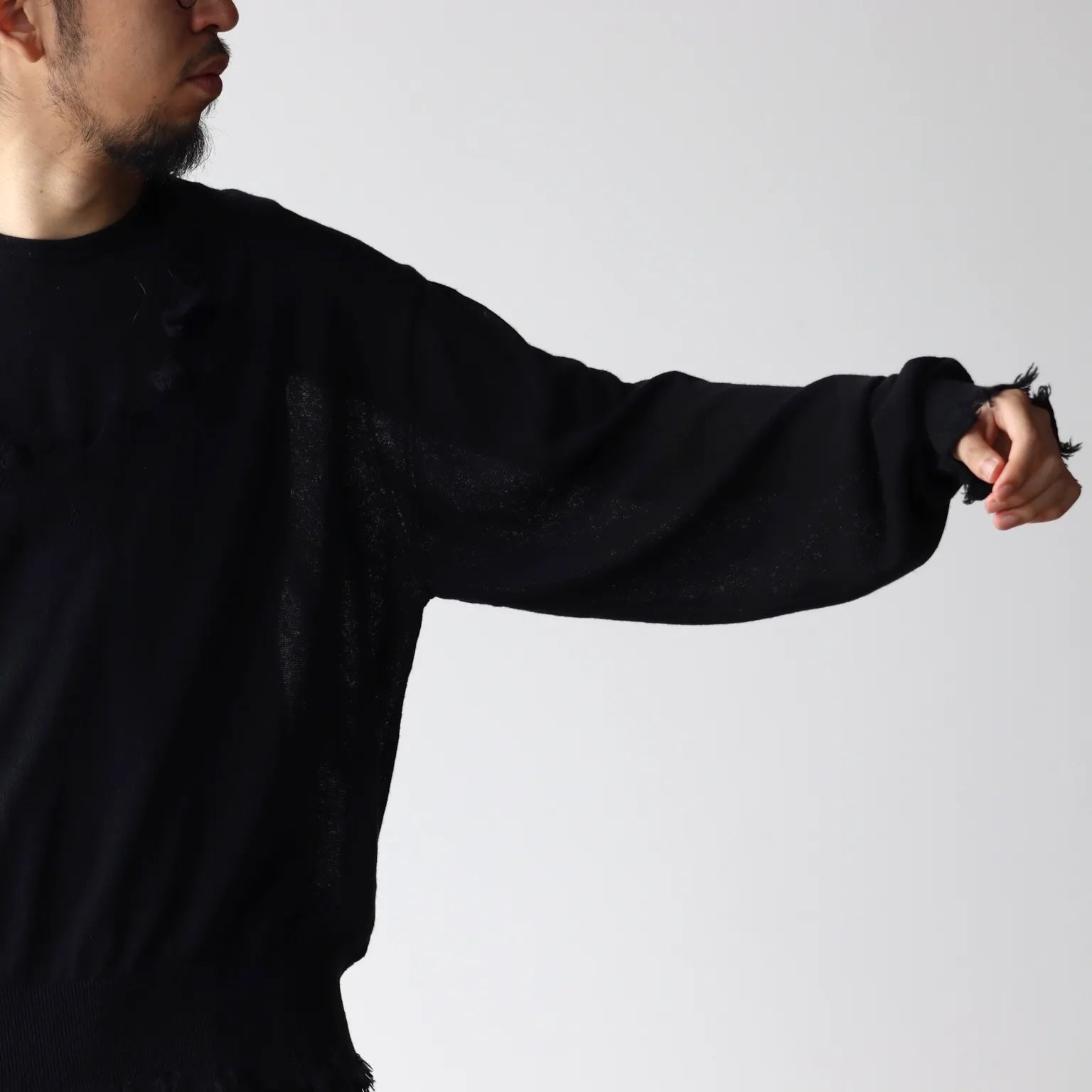 SEAN SUEN의 v-neck jumper는 코튼과 린넨이 베이스입니다만, 화섬도 능숙하게 사용하고 있어, 독특한 광택이나 투명감에 의해 블랙인데 조금 라이트로 너무 무거워지지 않는 블랙의 인상.
