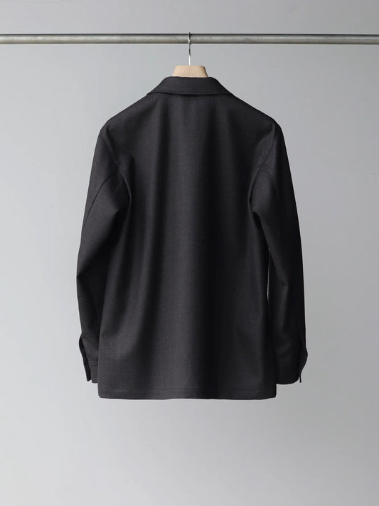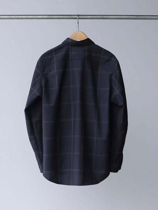 山内 | ノーミュールシングウール・ビッグウィンドウペンシャツ(羽衿付き)black check