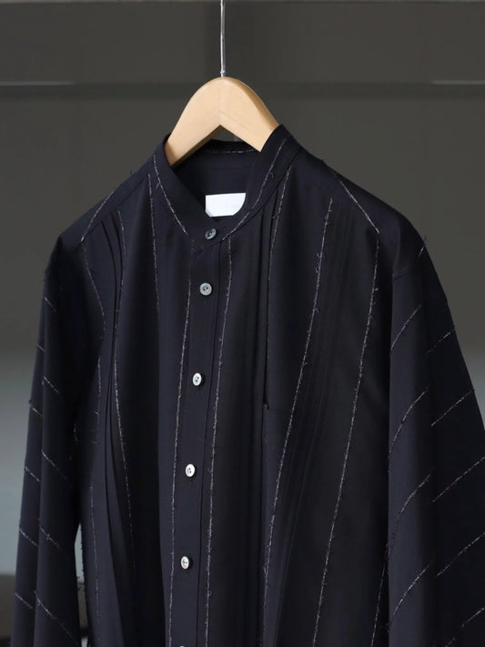 IRENISA | BAND COLLAR LONG SHIRT BLACK STRIPE