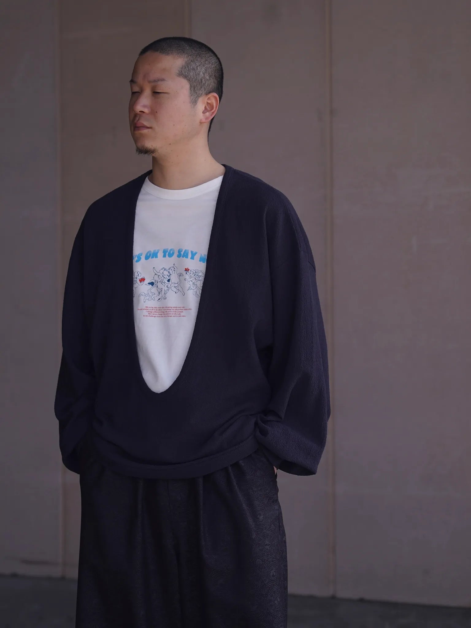 nonnotte Drape U Pullover with Cuff Sleeve Inkshade