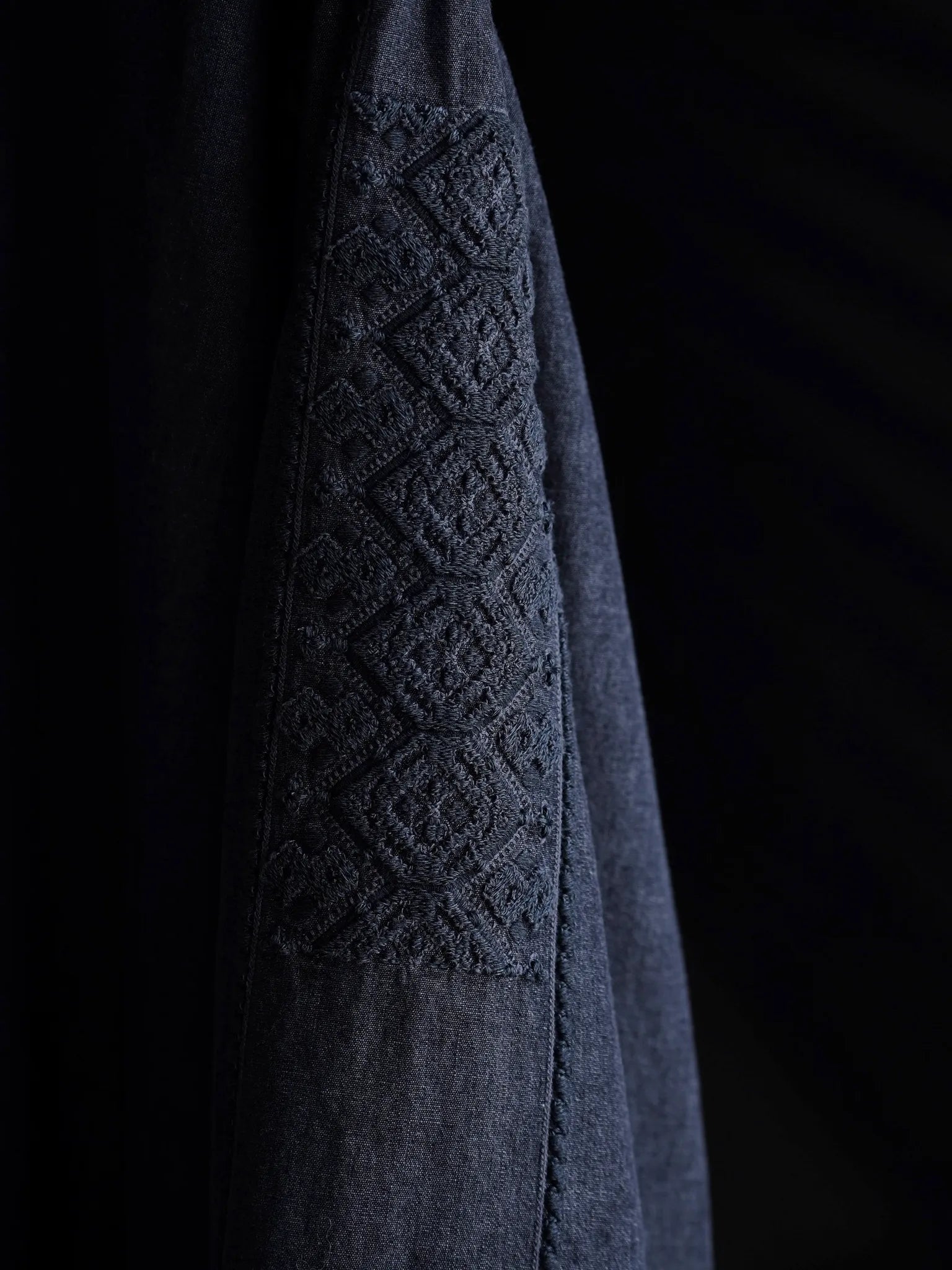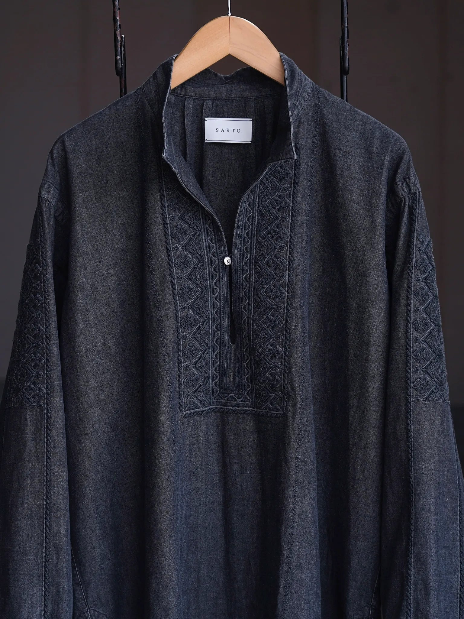 SARTO [COTTON CHAMBRAY] EMBROIDERY SKIPPER SHIRT WASHED BLACK