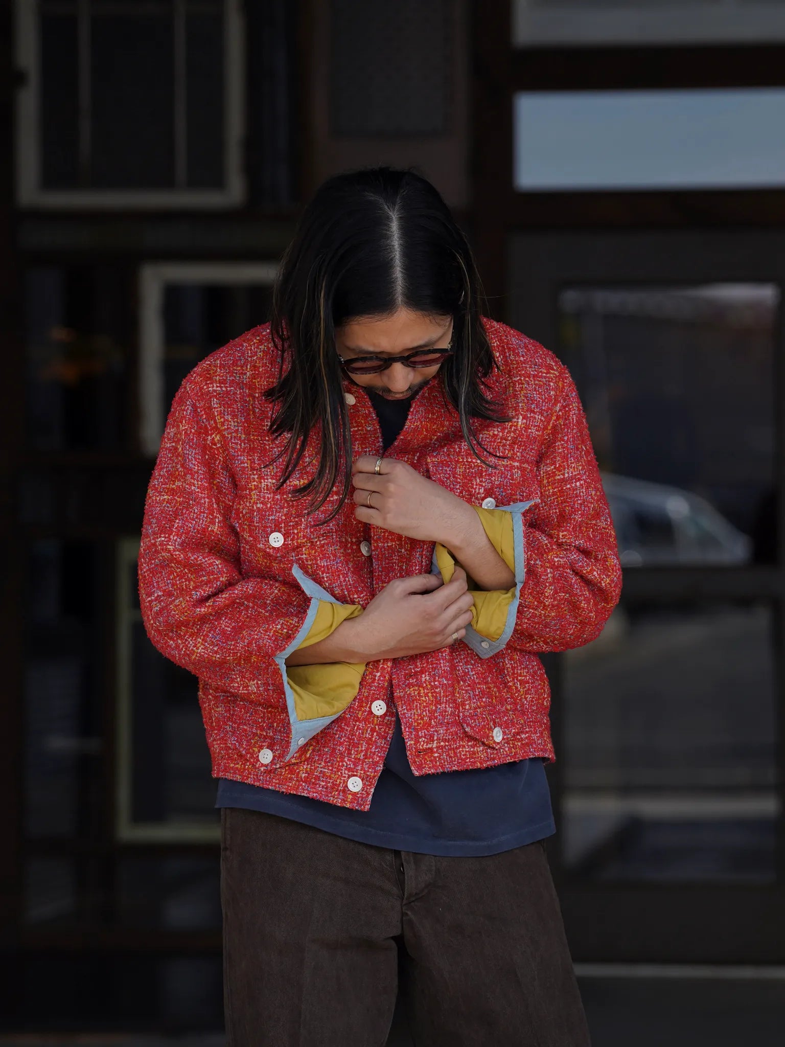 SARTO [HOME SPUN] TRUCKER JACKET SCARLET